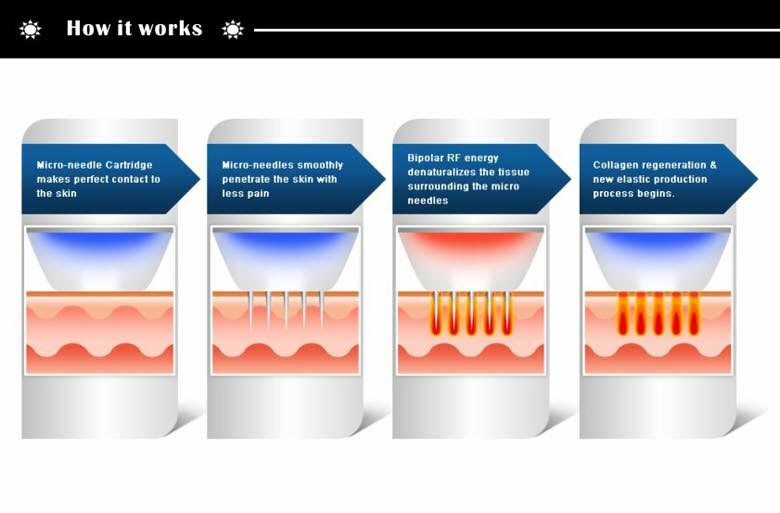 Fractional RadioFrequency micro-needling (MNRF) treatment of acne scars is a revolutionary method of acne scar revision. This method of scar revision does not use laser-light interactions, but uses radiofrequency energy to remodel collagen and scars. It is safe for all skin colours. It causes breaks down of the scar tissue, with minimal damage to the upper layers of skin.